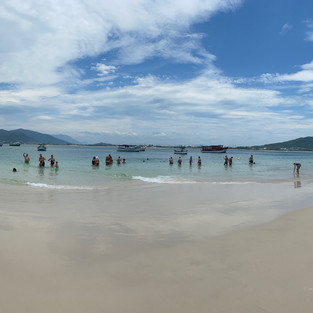 My first view of Praia do Sancho is breathtaking. This has been voted one of the world’s top ten beaches numerous times. Huge cliffs tower over the beach, easily 60 metres high, as straight as a cement wall. I see people on platforms on top, small as ants, looking down at the water and the people in it. The turquoise water is calmer here, turning to white only when it hits the light brown sand. As we cruise on, the cliffs give way to thick forests, so dense that you can only see the first layer. As we move on, we come to Dois Irmaos (Two Brothers) - two huge rocks resting in the ocean close to shore. These are the famous icons of the island and everyone snaps photos. Behind them we can see Baia dos Porcos (Bay of Pigs), with it’s clear turquoise water in natural pools. It’s so beautiful it doesn’t even seem real. I feel like I’m watching all of this on a life sized super HD screen. But the hot sun and sweat running down my back prove otherwise.